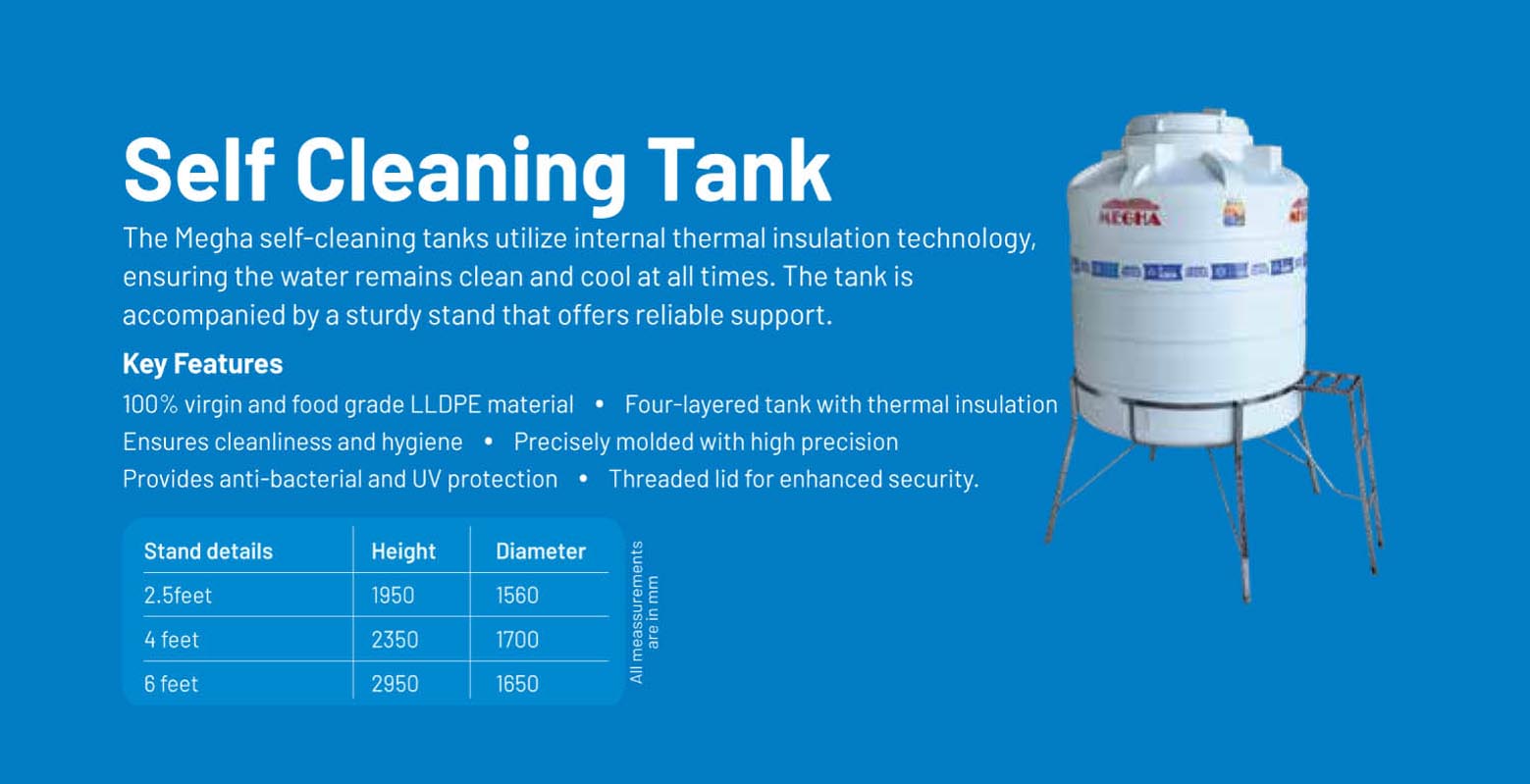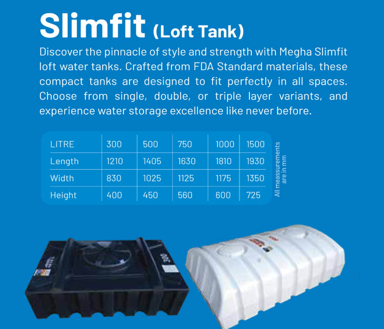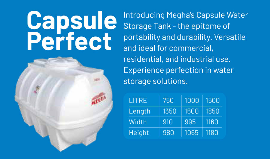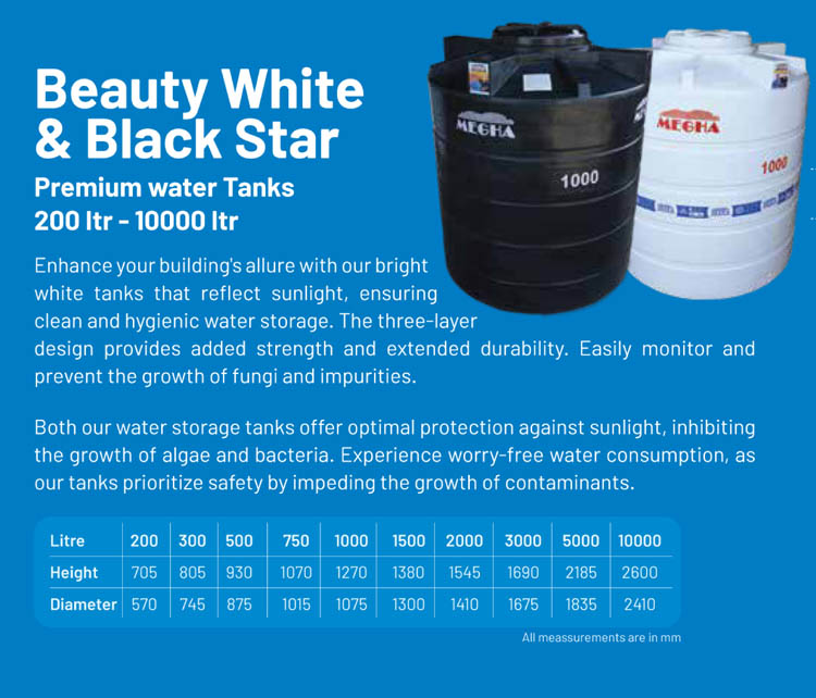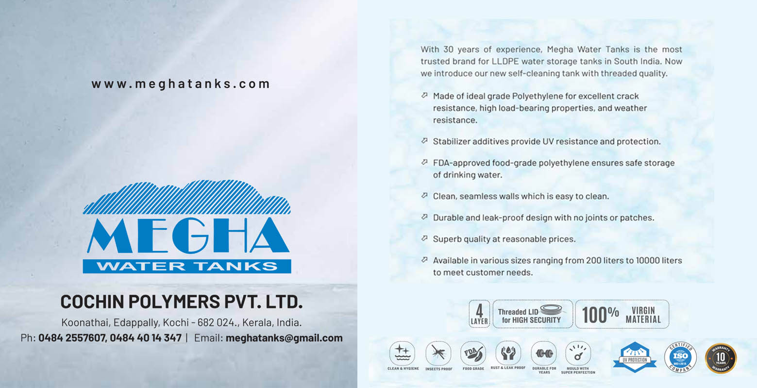 Megha Water Tanks stands atop its competitors as the most trusted brand since 25 years. Our steadfast quality built on our history of excellence and experience makes us the most preferred choice across South India. Megha pursue a well-defined quality management system that ensures top-grade raw materials and high engineering standards to deliver premium quality products. We offer a wide array of water tanks to meet the varied requirements of customers.