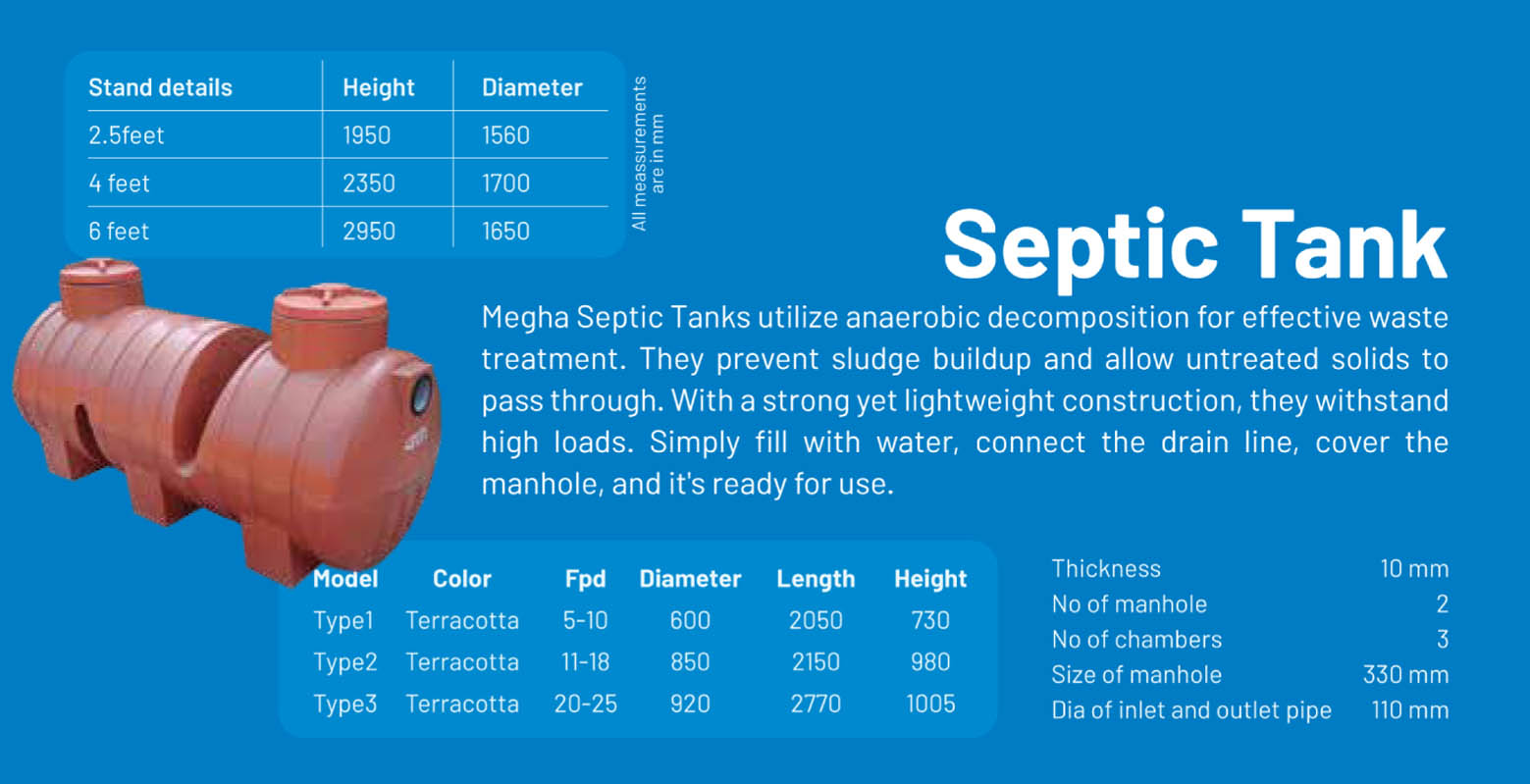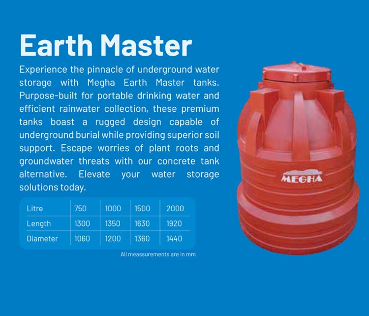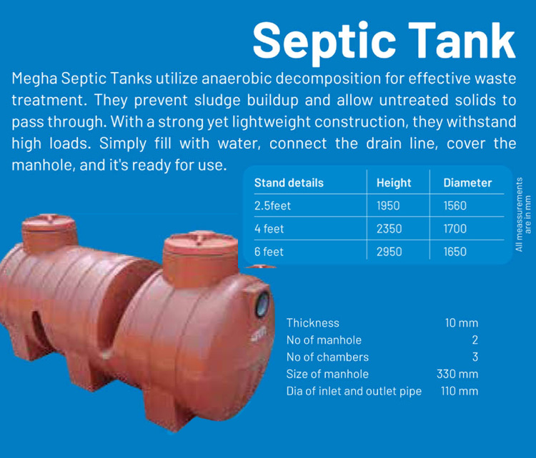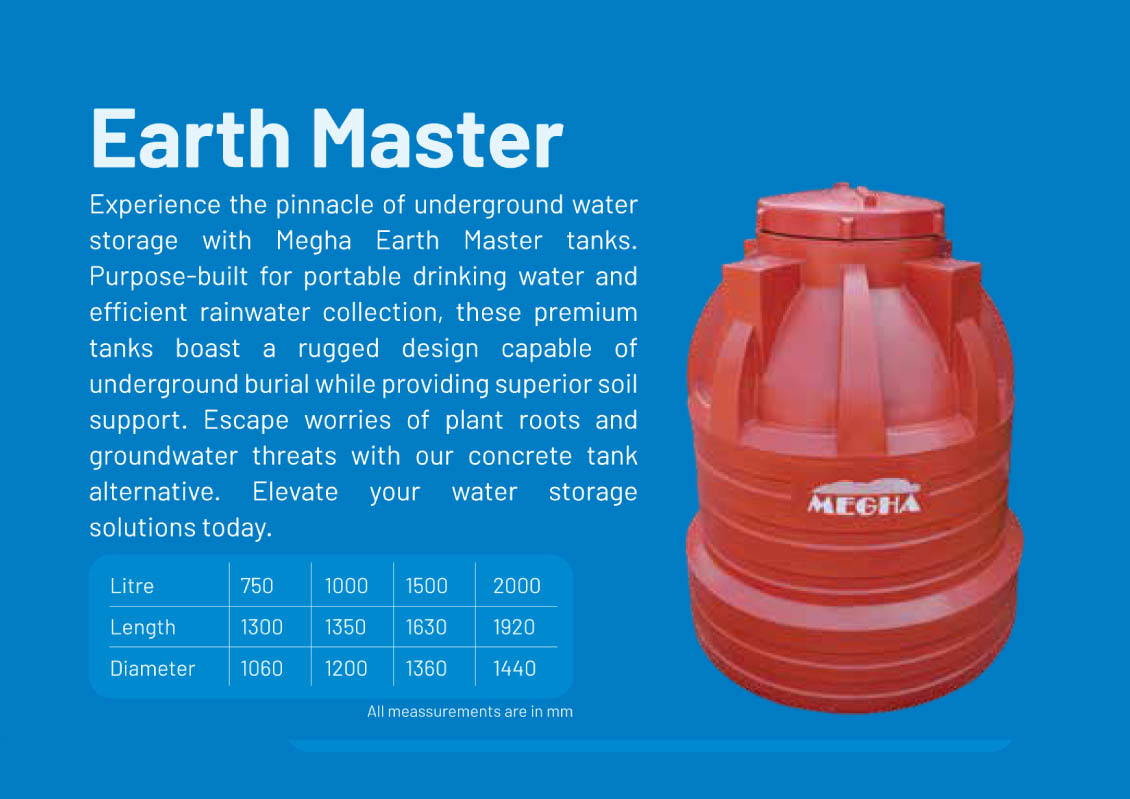 Megha Water Tanks stands atop its competitors as the most trusted brand since 25 years. Our steadfast quality built on our history of excellence and experience makes us the most preferred choice across South India. Megha pursue a well-defined quality management system that ensures top-grade raw materials and high engineering standards to deliver premium quality products. We offer a wide array of water tanks to meet the varied requirements of customers.